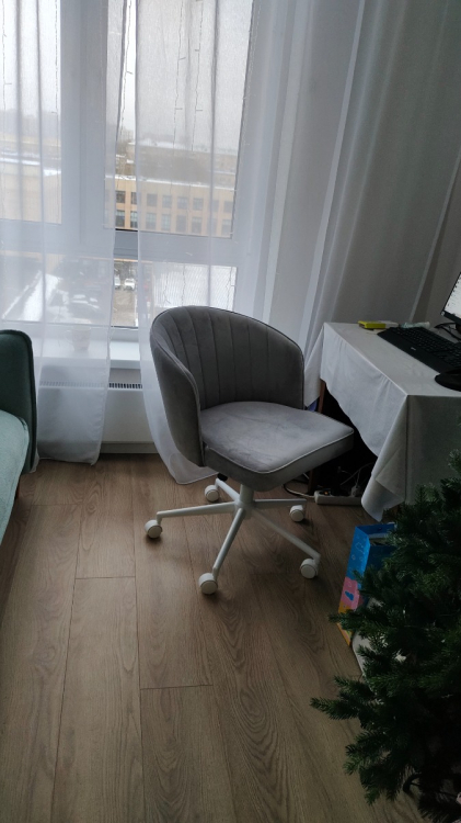Кресло классное. Широкое, удобное, есть куда положить локти, можно даже сесть с ногами по-турецки. Оно в меру мягкое и жёсткое. Материал очень приятный на ощупь. Колёса к нему сразу докупала отдельно полиуретановые, чтобы не царапали ламинат.