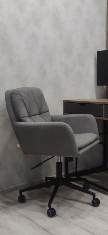 Обивка кресла выполнена из флока.Супер кресло! Очень качественное, аккуратное и добротное. Выглядит красиво, приятная ткань, удобная посадка, здорово, что присутствует, так сказать, функция «качания». Механизмы работают как нужно, плавно, колесики ездят тихо! Собирается легко, без всяких проблем. Ещё порадовала отличная упаковка- хорошая коробка, а в ней: каждый элемент кресла запакован в целлофан с поролоном, что значительно исключает повреждение кресла (его отдельных элементов) при его транспортировке. Очень довольны покупкой, именно такое кресло и хотели! Спасибо продавцу и ВБ!