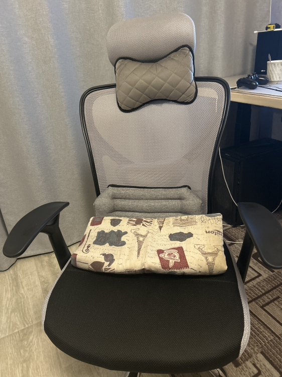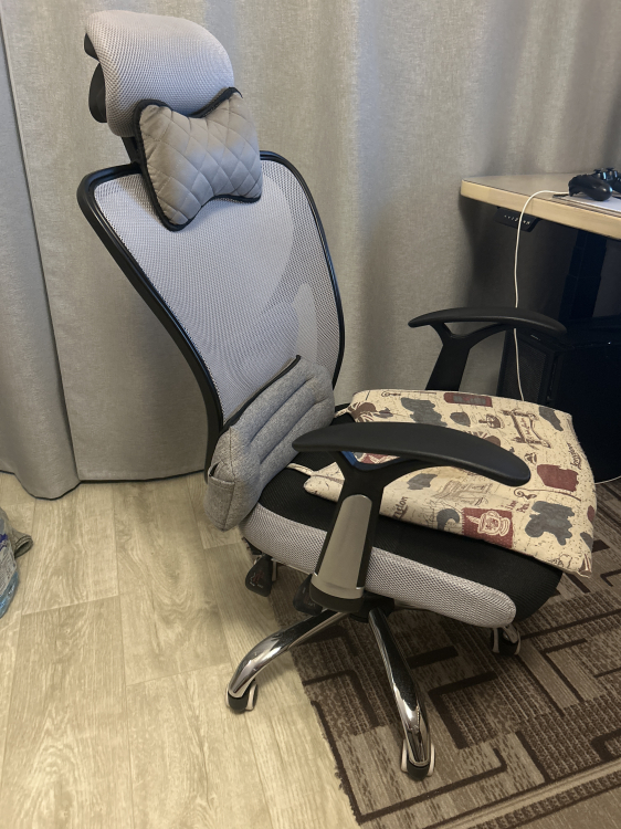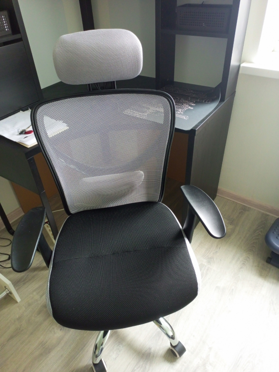 Звезду сняла за то, что на фото чёрное сиденье, а пришло полностью серое. В отзывах уже писали про такое. Кресло полностью устроило. Удобно для спины и головы. В отзовах писали, что отходит сетка у спинки, пока все норм . Время пользования месяц.; Достоинства: Хорошее, удобное кресло. Быстрая сборка.; Недостатки: Режим качания, как для меня сильно отклончеться назад. Почти полу лёжа. Я им не пользуюсь.