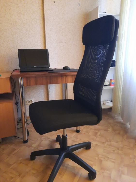 Внимание! Габаритная длина указана по подлокотникам!В целом кресло хорошее. Сидушка мягкая, регулеровка высоты хорошая. Доставка шла довольно долго, в день доставки перенесли ещё на неделю, но через 2 дня после первой даты доставки оно пришло. Мне не понятно зачем доставлять сиденье с уже прикрученными болтами, ведь время надо тратить и на то, чтобы их выкрутить, и потом вкрутить обратно. Несколько болтов были прикрученны будто не по резьбе. Тратил очень много сил на то, чтобы выкрутить такие болты и боялся сорвать резьбу. Остальные выкручивались без усилий. Есть несколько мест где краска облезла. Противного запаха от кресла нет, он слегка уловимый. Лично я решит открутить подлокотники, т.к. особой необходимости они для меня не представляют, и чтобы они не мешались при задвигании под стол. Товаром доволен