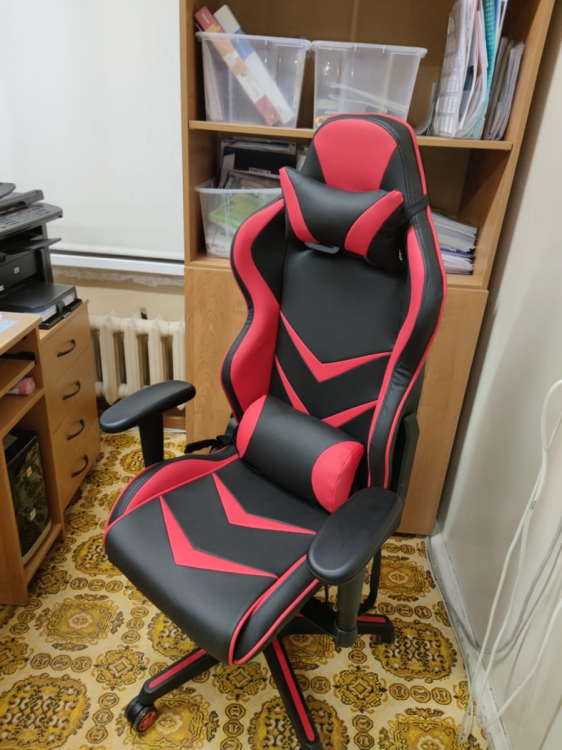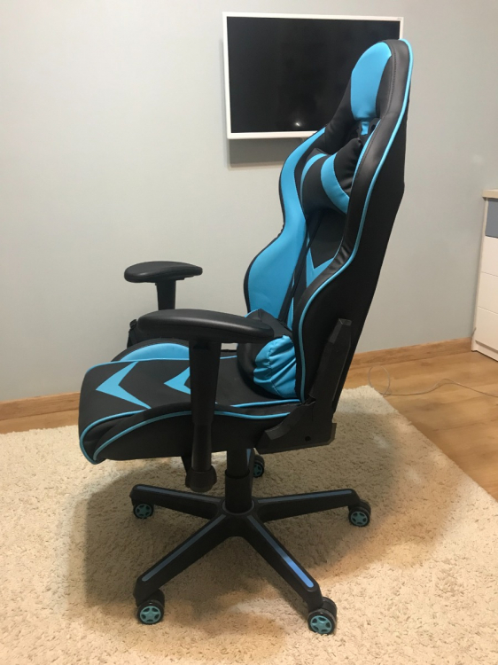 Отличное кресло, хорошо подходит для людей среднего и выше среднего роста. Мой рост 187 сантиметров, мне это кресло подошло идеально. Тушка сидит как влитая, при этом чувствуешь себя в нем достаточно свбодно. Мягкий подголовник и подушка под спину делают свое дело. Раньше болела спина при постоянном сидении за компьютером, сейчас такого не наблюдаю. На вид конструкция достаточно надежная, все работает, подлокотники настраиваются под функциональные нужды. Также нравится дизайн кресла. Я взял себе синее, очень красиво вписывается в общий интереьер помещения. Рекомендую к покупке!; Достоинства: Удобное, функциональное, красивое; Недостатки: Пока не обнаружил