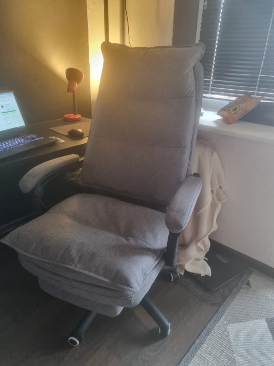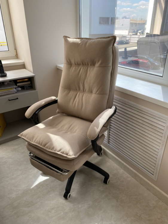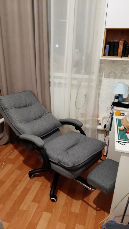Отличный, удобный офисный стул с выдвижной подножкой, регулировкой наклона спинки и регулировки по высоте, единственно привык на старом стуле к функции кресла-качалки тут такого нет.; Достоинства: мягкий, легкий в сборке , удобная подножка. регулировка наклона спинки и регулировка по высота; Недостатки: нет функции кресла-качалки