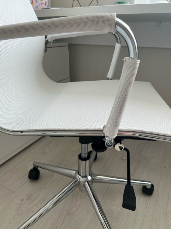 Внутри сетки обнаружил маленький кусок окалины от сварки. С трудом вытащил его пинцетом. На белой сетке были видны отпечатки чьих-то пальцев, которые смыл с помощью мыльного раствора. При сборке присутствует некоторая нестыковка двух втулок для подлокотников. Конструкция кресла ненадежная, хлипкая.; Достоинства: Красивое кресло; Недостатки: 11 т.р. - дорого для такой китайщины. Картонная упаковка буквой "Г", которую неудобно транспортировать.