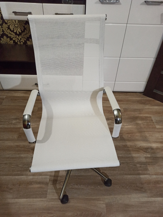 Внутри сетки обнаружил маленький кусок окалины от сварки. С трудом вытащил его пинцетом. На белой сетке были видны отпечатки чьих-то пальцев, которые смыл с помощью мыльного раствора. При сборке присутствует некоторая нестыковка двух втулок для подлокотников. Конструкция кресла ненадежная, хлипкая.; Достоинства: Красивое кресло; Недостатки: 11 т.р. - дорого для такой китайщины. Картонная упаковка буквой "Г", которую неудобно транспортировать.