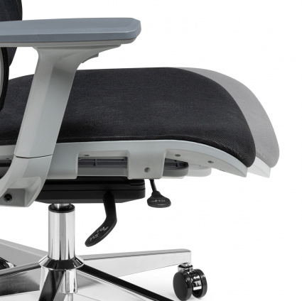 Спинка оснащена механизмом регулировки по высоте, управляемом при помощи кнопки, расположенной на задней части конструкции.