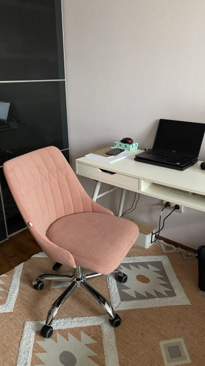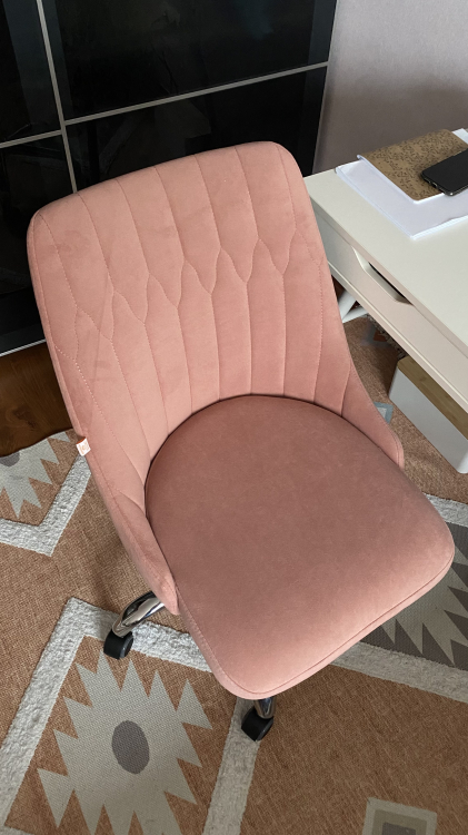 Каркас - фанера. Мягкий наполнитель - ППУ стандартной плотности. Крестовина - 600 мм. Декоративная стяжка на спинке, ткань - флок.Кресло Swan: - цвет на фото ярче, в реальности пыльно розовый, оттенок приятный - материал плотный, приятный на ощупь - сиденье упругое, но не жесткое - удобная спинка - регулируется по высоте - сборка простая, но следите, чтобы не шаталось из стороны в сторону (необходимо плотно посадить в основание)
