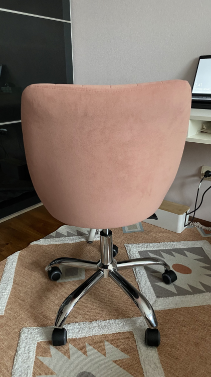 Кресло Swan: - цвет на фото ярче, в реальности пыльно розовый, оттенок приятный - материал плотный, приятный на ощупь - сиденье упругое, но не жесткое - удобная спинка - регулируется по высоте - сборка простая, но следите, чтобы не шаталось из стороны в сторону (необходимо плотно посадить в основание)