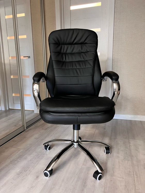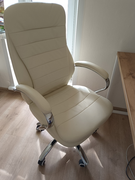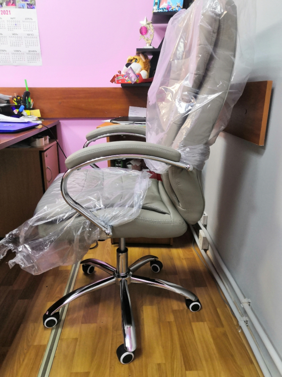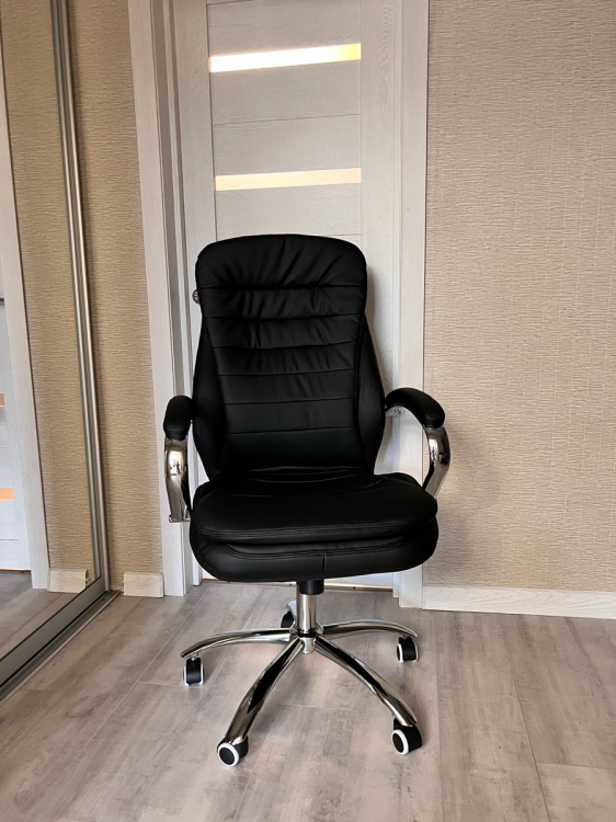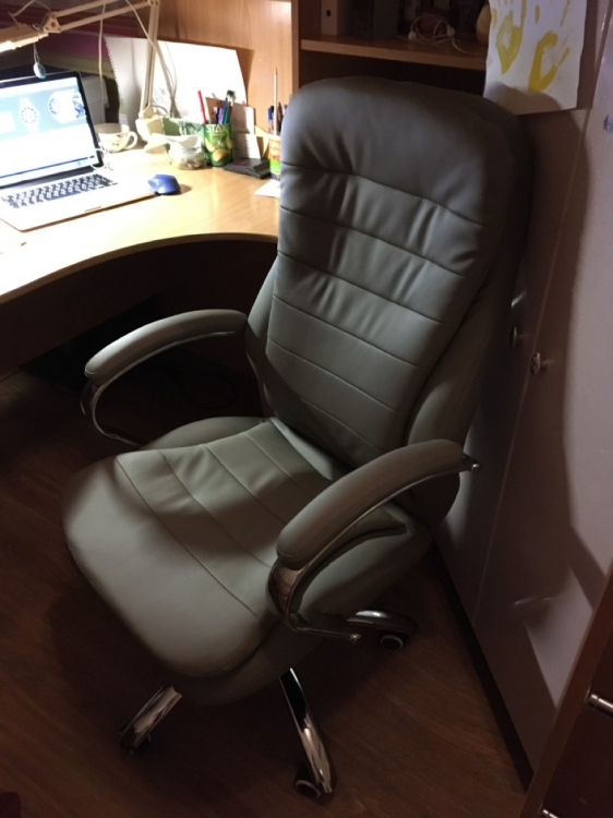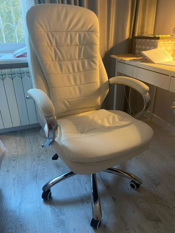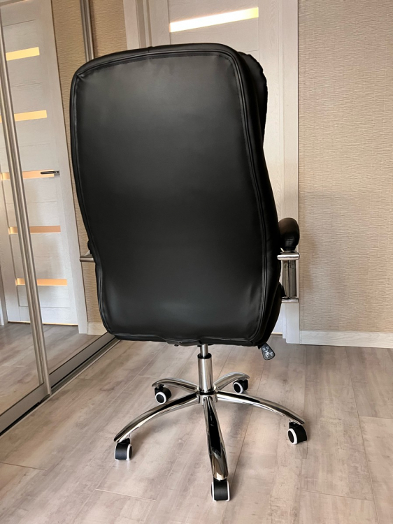 Сборка интуитивно быстро осуществлялась, все детали кресла упакованы в мягкую изоляцию для лучшей сохранности.; Достоинства: Представительное кресло руководителя, удобно в нем находиться, эргономическая форма и поддержка спины, регулировка высоты сиденья для разных ростов руководителя, тактильно экокожа приятна на ощупь, форма подлокотников эстетична, удовольствию нет предела от сидения в этом кресле; Недостатки: Нет