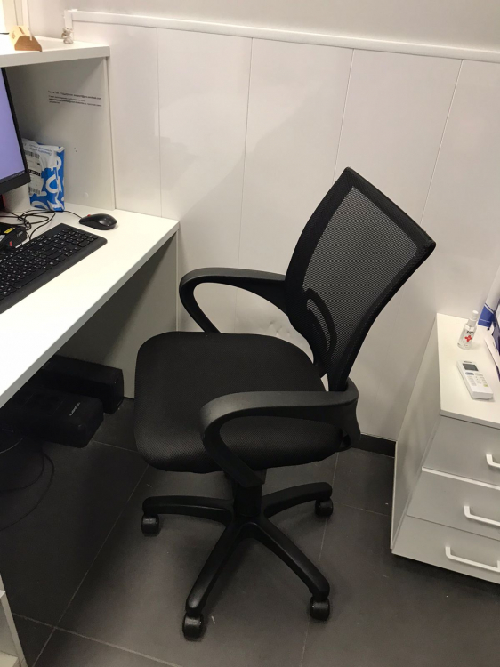 Купили в подарок коллеге. В кабинете смотрится легким, за счет сетчатой спинки практически теряется в интерьере. Удобное, мы все посидели. Коллега доволен