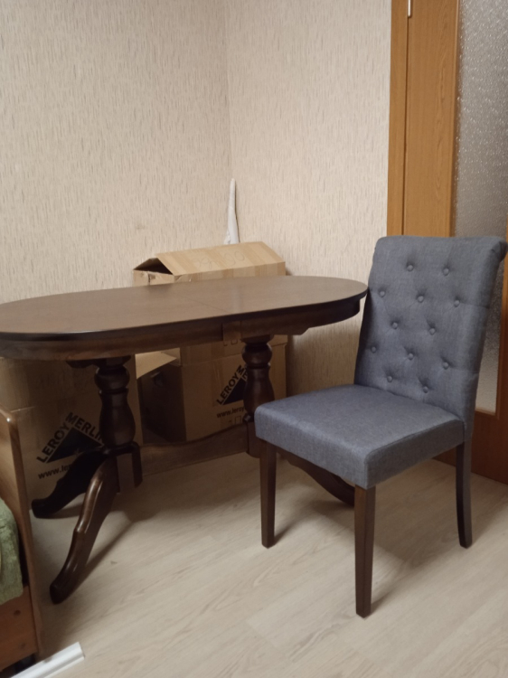 Стулья очень легкие, видимо, за счет наполнителя. Сравниваю со стульями Икеа, которые у меня стоят на кухне. При этом сиденье очень жесткое, как будто внизу не мягкая набивка, а пенопласт. На одном стуле 1 ножка короче остальных, поэтому он качается. Собирается очень сложно, в отличие от Икеи.