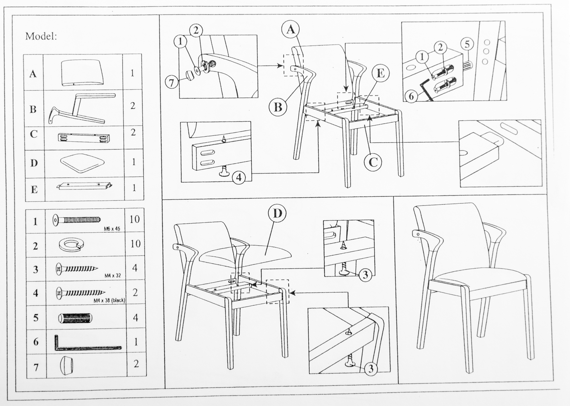 Стулья очень приглянулись по дизайну, и в этом смысле они не разочаровали. Радуют глаз, хорошо вписываются в окружающее пространство. Есть, однако, небольшие нюансы: не везде аккуратные стыки деталей подлокотников, некоторые части плохо прокрашены и т.д. Но это так, мелочи. Больше всего разочаровало отсутствие у одного из стульев внутренней резьбы с одной стороны спинки. Поскольку сборка была уже в самом разгаре, а заметить это при первичном визуальном осмотре было сложно, претензии предъявлять некому. Для фиксации спинки (а она болталась) пришлось использовать подходящий по размеру обыкновенный пластиковый дюбель. Не знаю, надолго ли хватить этого "гениального" инженерного решения. Резюмирую: стулья хорошие, но качество компонентов перед сборкой стоит проверять тщательнее.