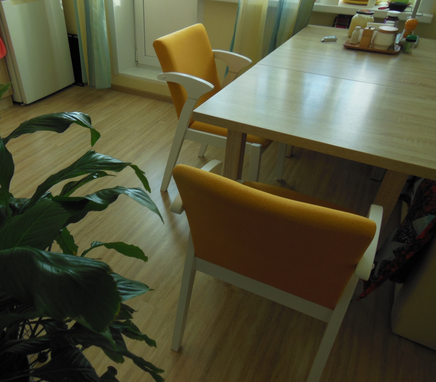 Пересмотрели много вариантов стульев. Выбор остановили на этих. Стильные, лаконичные, яркие. Приобрели в кухню. Забирают некоторое пространство, но очень освежают помещение.