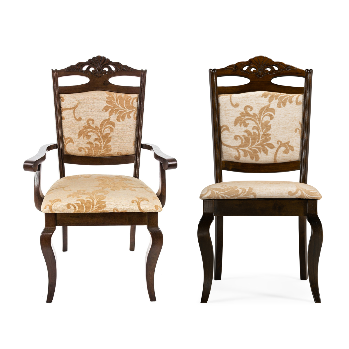 Стул Demer сочетает в оформлении два контрастных цвета: насыщенный капучино и нежный крем-брюле обивки. Особую изюминку стулу придает декоративная резная спинка. Мягкие спинка и сиденье позволят комфортно сидеть на стуле длительное время. Чуть выгнутая форма задних ножек обеспечит дополнительную устойчивость. Универсальный стул может использоваться для меблировки обеденной зоны, обустройства рабочего уголка или зоны отдыха в гостиной. Для изготовления обивки использована ткань, а каркас выполнен из натуральной древесины гевеи.