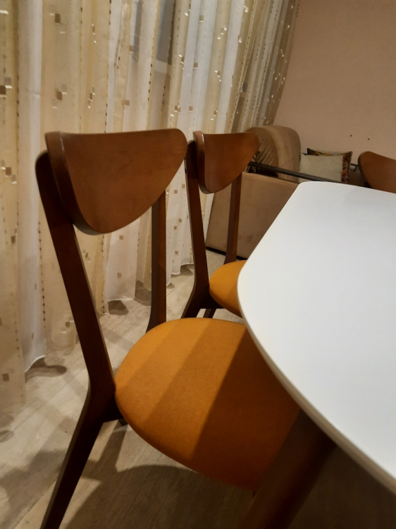 Долго ходили по мебельным, выбирали. Искали "деревянные" стулья, в спокойном дизайне(классику в основном). Так же смотрели в онлайн-магазиинах и наткнулся на эти, видели такие же стулья (название "Макси"). Они нам понравились, удобные, НО цвет дерева был светлый(сидушка такая же). А тут как раз таки коричневое исполнение - то что надо. Сразу заказали( цена такая же). Очень хорошие. Качество довольно знатное. Заказывали 2 стула. пришли в одной коробке в разобранном виде + все необходимое для занятия "собери сам" =) Немного, конечно, заковырялся, так как не все идеально подходило. но были собраны!; Достоинства: Стильно смотрятся, удобно сидится.; Недостатки: сборка, не все болтики идеально подходили, пришлось поковыряться.