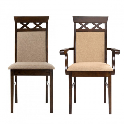 Стул деревянный. Очень крепкий и устойчивый! Обивка у стула очень качественная. Покупкой довольна!