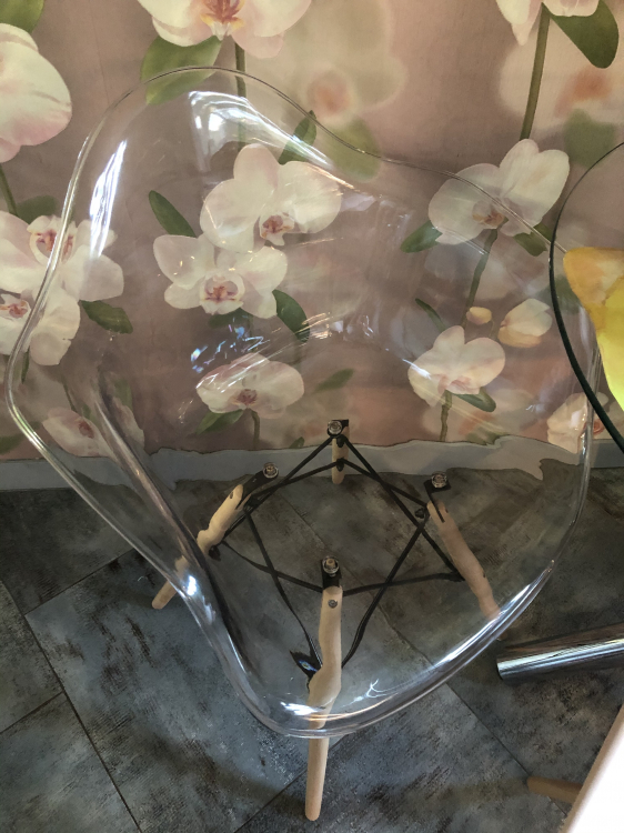 Стулья прозрачные - замечательные, совсем их не видно. Увеличивают площадь помещения. Очень довольна покупкой.