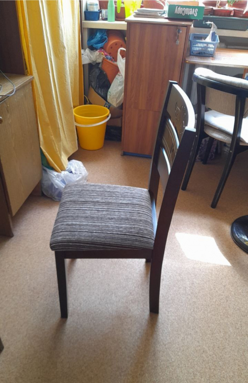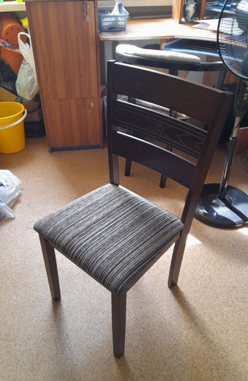 Стулья классные. Цвет очень подходит под деревянную столешницу цвета "эбеновое дерево". Сделаны качественно, не шатаются, собираются без проблем. Сидушка довольно мягкая, материал обивки грубоват, но это только плюс - дольше продержится.