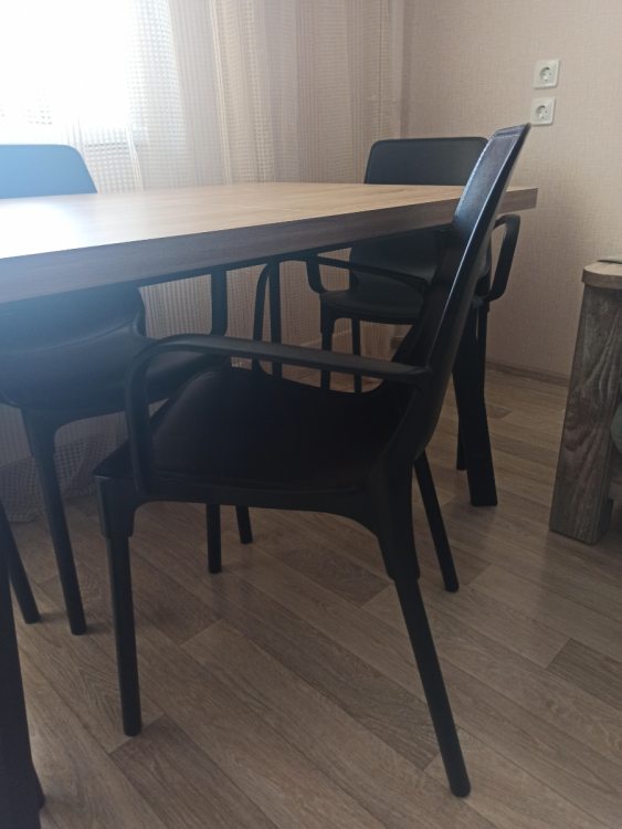 Достоинства: Купила сразу 8 штук к столу из массива! Стиль лофт получился!) Смотрятся строго! Крепкие! Сборка элементарная! Удобно сидеть! Выбирала именно с подлокотниками на замену предыдущим!; Недостатки: Собирают пыль и шерсть, электризуются! Протираю салфеткой белого кота, которая снимает статическое электричество на неделю в среднем!