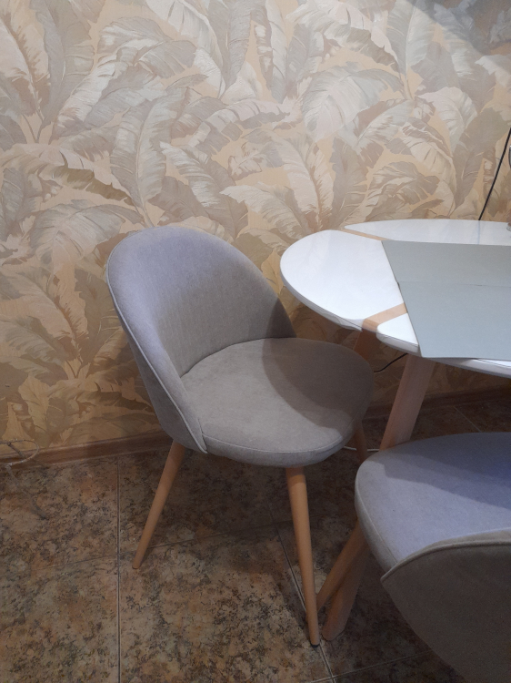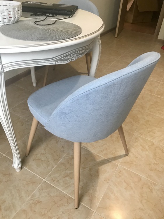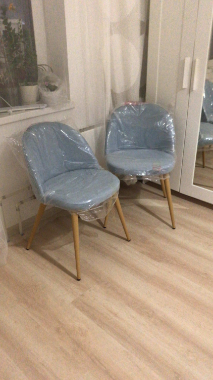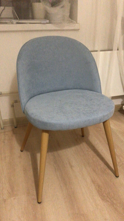Стулья достаточно удобные, ткань интересная и цвет приятный очень. Легкие в сборке. Однако, не понравилось, что ткань на сидении стула не плотно натянута, она быстро сминается, из-за чего появляются складки ткани, что выглядит не очень красиво. Также наполнитель у сиденья через пару дней уже немного промялся. P.S. Прикрепляю фото для того, чтобы понятно было какой цвет стула в реальности. Немного отличается от представленного на сайте.