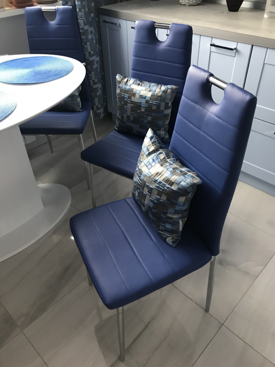 Купили синие стулья для офиса- очень хорошее качество, отлично смотрятся, доставка быстро.