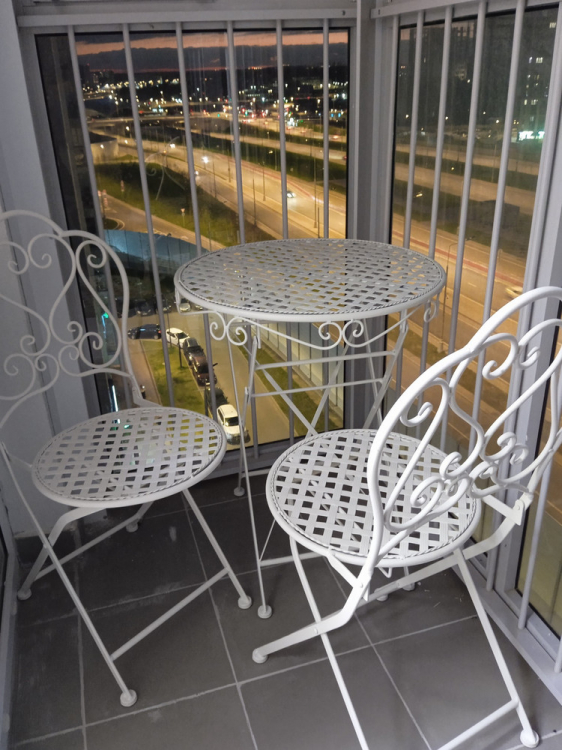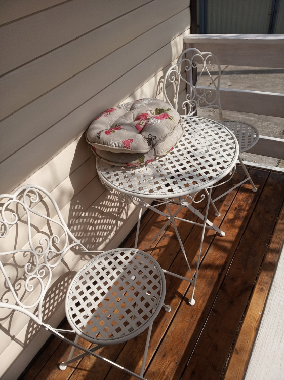 Я довольна и счастлива! Чудесный комплект к столику этого же продавца! Поставила на балконе и теперь завтракаю, обедаю и ужинаю только здесь Это мой идеальный мир Доставка отличная, все части стульев упакованы в пленку, сами стулья тоже в пленке и уложены в картон. Пришли в идеальном состоянии. Очень удобно, что стулья складываются и занимают места не больше чем пиджак на вешалке. Можно взять их с собой для фотосессии на природе