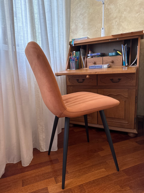 Красивый, стильный стул. Идеально вписался в интерьер комнаты. Добротные ножки. Спокойно выдерживают вес мой вес 85 кг