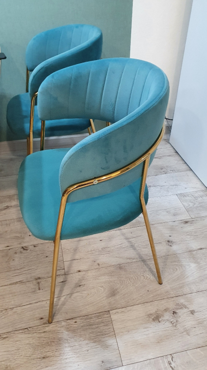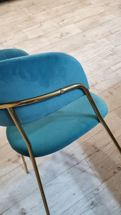 Очень сложно было найти стулья с золотыми ножками. Эти устроили по цене и качеству. Упакованы хорошо. За круглый стол 1 метр спокойно помещаются 5 штук в задвинутом виде и 6-7 в отодвинутом.; Достоинства: Мягкие, красивые, удобные; Недостатки: Есть нюансы в отделке спинки
