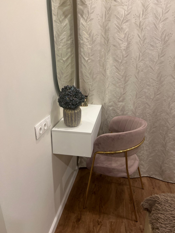 В целом стул не плохой, но дорого не выглядит. На фото и видео лучше смотрится, чем в живую.; Достоинства: Удобно сидеть, легкая сборка, упакован хорошо; Недостатки: Цвет ножек выглядит дёшево и обивка намного темнее, фото и видео не передают истинный цвет. В живую цвет фиолетово-розовый (тусклый, как будто грязный), на фото с подушкой чуть лучше передаётся цвет (подушка пыльно розового цвета)