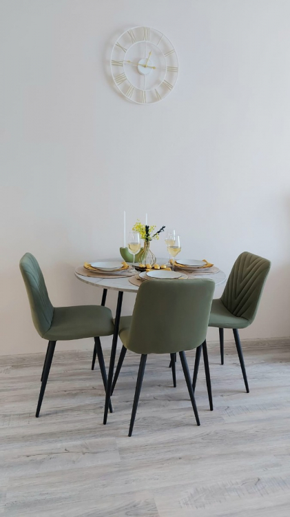 Приобрела 4 стула,цвет полностью совпадает с заявленным( подбирала к кухонному гарнитуру),сборка не вызвала затруднений.Девушка-менеджер всегда отвечала на вопросы,за что ей спасибо отдельное.Ребята доставили стулья на следующий день заказа, все четко,при мне вскрыли коробку,проверили нет ли дефектов.Радует,что их не было. Надеюсь,что стулья прослужат долго. Рекомендую к покупке. Единственное,что добавлю: тем, кто любит более вальяжно сидеть ,нужно будет рассмотреть модель с более высокой спинкой.