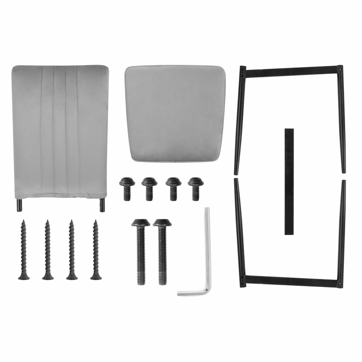 1. Выложите все содержимое коробки: сидение, спинка, 2 ножки, 1 перекладина, 1 шестигранник и фурнитура.