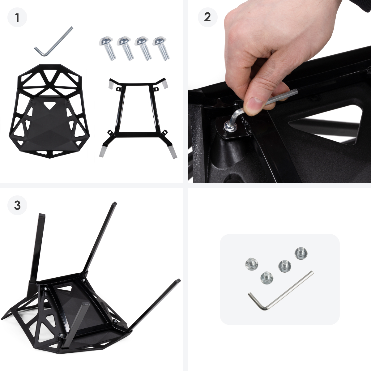 2. Переверните сидушку и присоедините каркас - вкрутите в четыре отверстия винты с помощью шестигранника.
