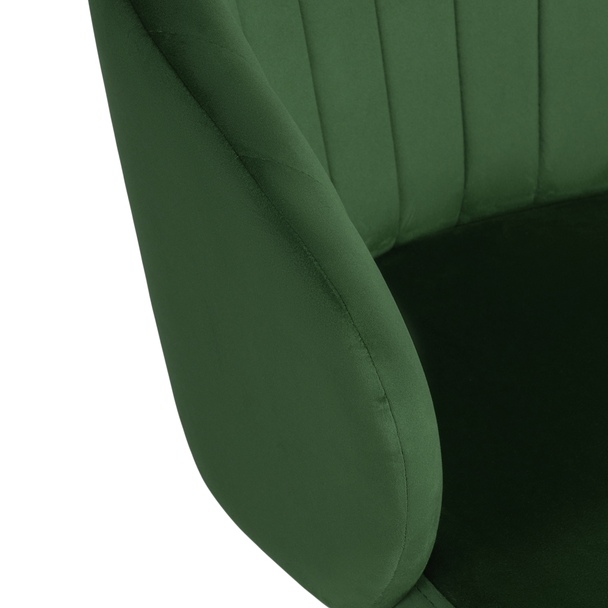 Спинка стула плавно переходит в подлокотники, высота которых позволяет практически полностью задвинуть кресло под стол стандартной высоты (75 см), что значительно экономит пространство.