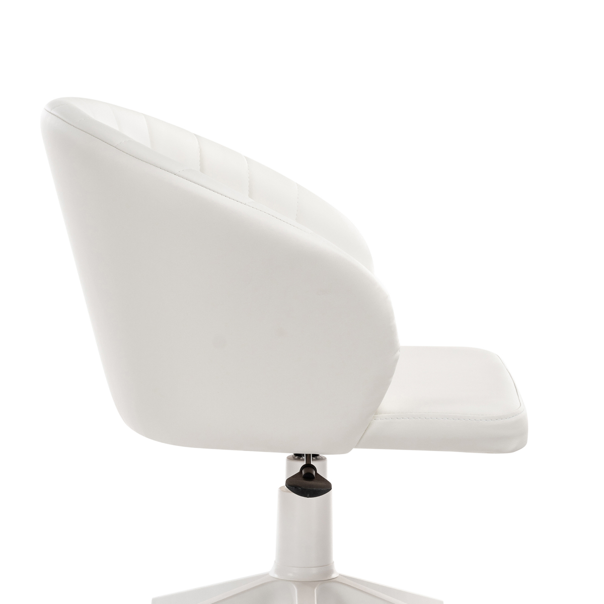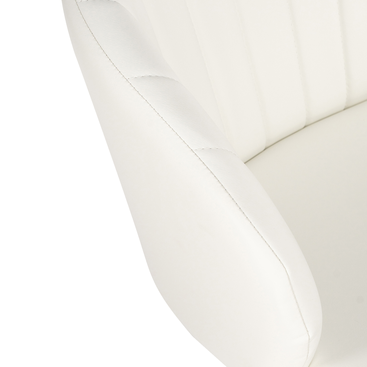 Спинка стула плавно переходит в подлокотники, высота которых позволяет практически полностью задвинуть кресло под стол стандартной высоты (75 см), что значительно экономит пространство.