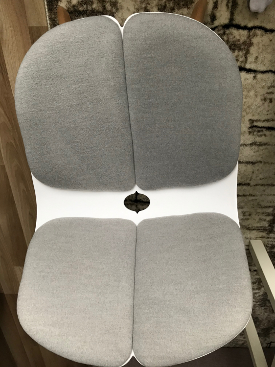 Стул интересного дизайна с комфортной посадкой. Но есть и нюнасы те, которых на фото не видно, а на выставке посмотреть его не было возможности. Обивка это не рогожка, как может показаться на первый взгляд, а ткань типа флока, на фото постарался отобразить. Конструкция сделана добротно и надежно, сначала устанавливается металлическая опора стула, которая и воспринимает всю нагрузку. На сборку уходит немного времени, 8 болтов прикрутить. Отверстие для удобства переноски стула. В целом доволен.