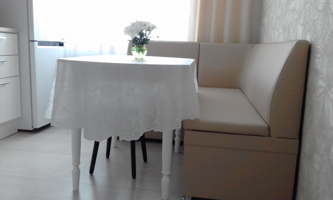 Прекрасный мягкий диван, идеально подошёл по размерам кухни. Вместительные ящики под сиденьем, элегантный внешний вид.
